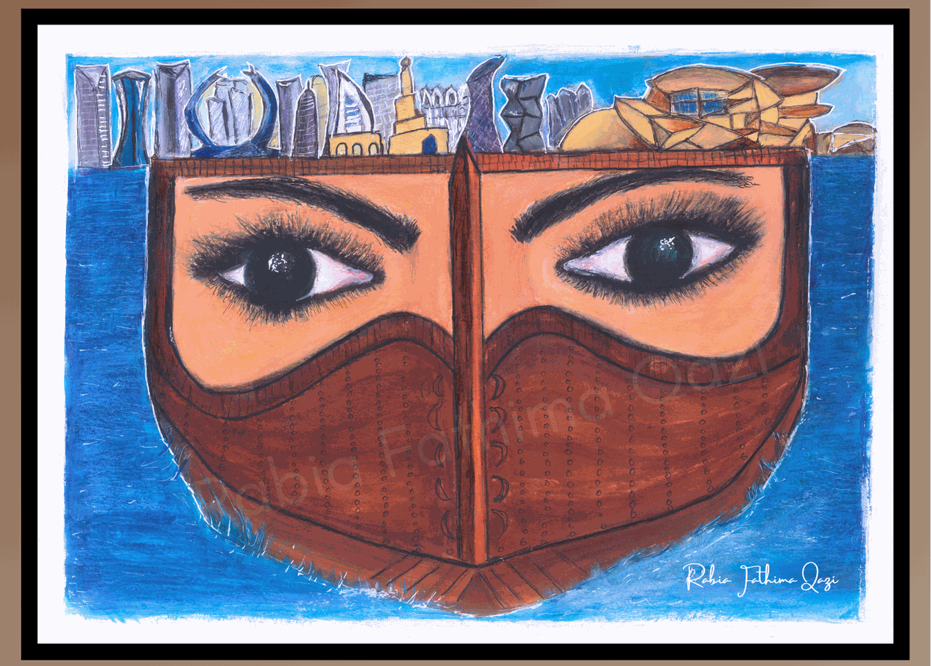 An optical illusion that juxtaposes two strong symbols of Qatar & Arab heritage - the Batouleh (eye mask worn by regional women) & the Dhow (a unique regional fishing vessel). The Guardians of Heritage depicts how heritage and culture remain at the forefront of Qatar’s identity even as it marches forward as a beacon of progress and achievement.
